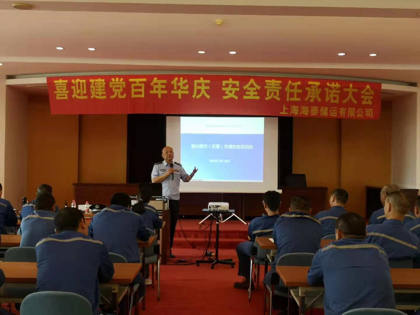 为进一步深入推进公司安全生产,扎实做好当前公司安全各项工作,全力护航建党百年,2021年6月28日,公司召开了安全生产专题会议暨“平安护航建党百年”安全责任承诺大会。海泰储运全体员工参加会议,同时邀请了宝钢集团运输部运管室袁建新、宝山交警支队俞惠亮警官进行宣讲,会议由海泰储运副总经理王宝林主持。