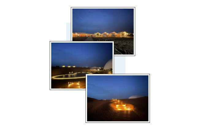抵达后入住位于沙坡头内的星星酒店,走出房间就是沙漠,海拔1430米,因远离城市,没有光污染,极适宜观星。