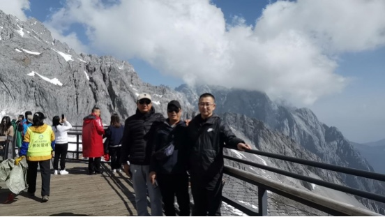 透过缆车的玻璃窗,有种扶摇直上九万里的感觉,乘坐索道来到4506米的高处仰望巍峨的玉龙雪山,每个人都感到无比震撼。然而绝大多数同事不满足于此,跃跃然地开始登顶更高的4680米王座,再从4680米俯瞰全景,更是壮丽至极。