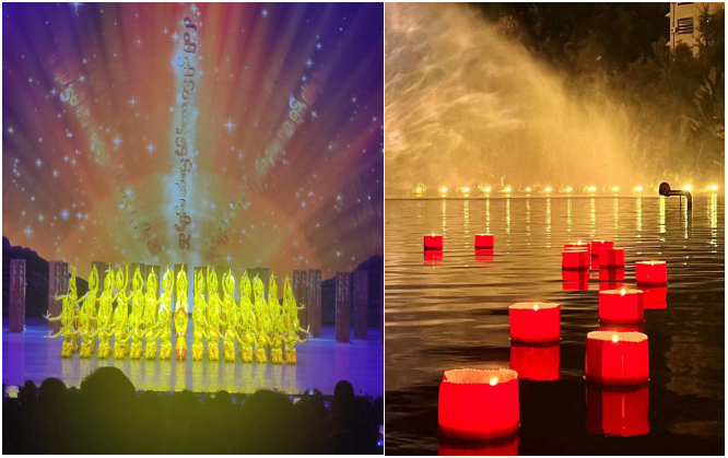 “澜沧江·湄公河之夜”文艺演出和篝火晚会是曼听公园最大的亮点。无锡的小伙伴们还在现场进行打鼓表演,鼓声阵阵引得周围群众一片欢笑!文艺表演气势恢宏,异域民族气氛浓郁,傣族王室宫庭舞、优美的葫芦丝演奏、瑶族独特的咬手定情、婚俗互动节目等等,主持人诙谐幽默,互动性、娱乐性极强。