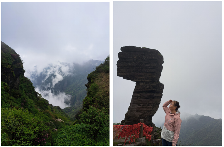 漫山遍野的杜鹃花开放,鬼斧神工的蘑菇石矗立,向上的风景,果然是好啊!红云金顶就在那里,多少人在努力地做着最后的登顶。而老金顶呢,就安安静静的,在云端,等待着人们的到来。至此,我们可以大声说出:梵净山,我们已来过!!