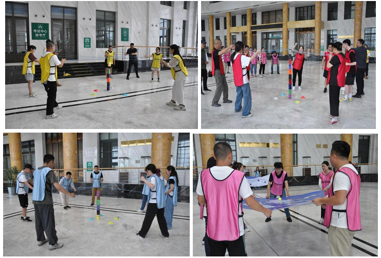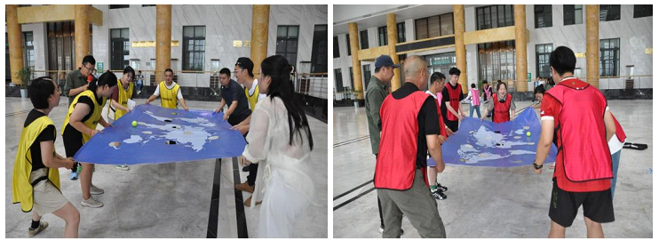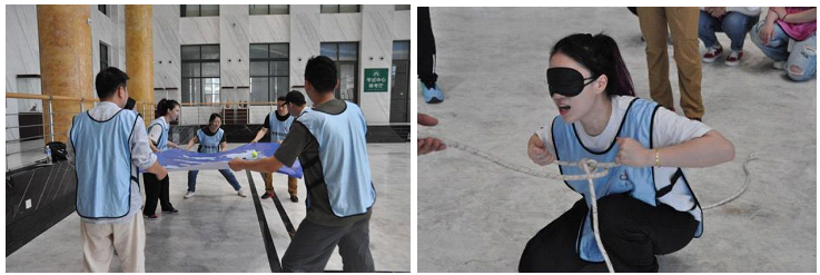 “合力筑塔”、“世界球”、“盲人方阵”,通过另外三组游戏,培养团队配合协作能力,加强团队精神;培养团队成员之间的沟通方式与行为方式的变化;激发团队成员的参与意识,让每个组员都能扮演好各自的角色,为完成团队任务做出贡献。同时也从游戏中发现了存在并且要予以纠正的问题: