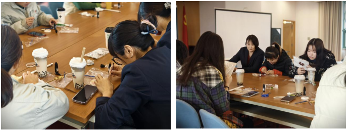享用完美味的下午茶,活动进入了充满文化韵味的体验环节——缠花工艺和螺钿工艺。大家迫不及待地动手尝试,穿针引线、缠绕丝线,最终一朵朵缠花在大家手中逐渐成型,或粉嫩娇俏的蝴蝶,或洁白无瑕的铃兰。