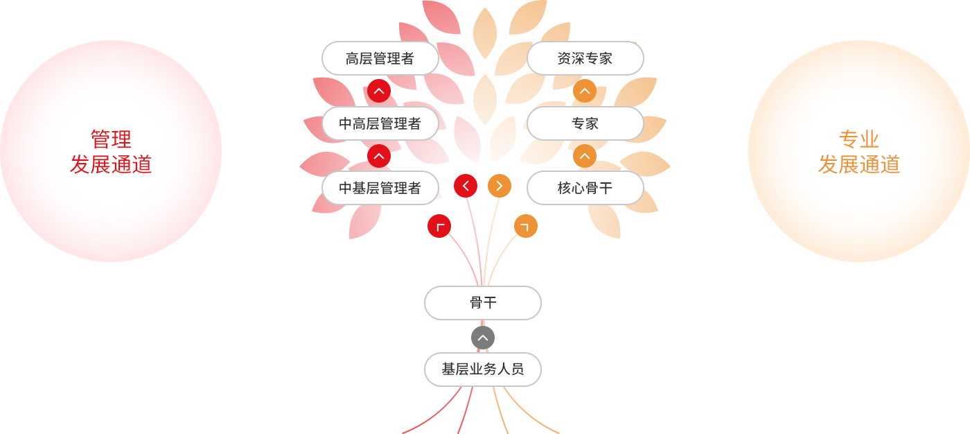 通过建设员工双通道,在各职位序列实行“专业晋升通道与管理晋升通道并行发展”的任职机制,保证业务领域中业绩突出的员工,在待遇上不受管理层级的限制。公司会根据员工的特点,为员工和各级后备人才进行职业发展规划,明确其职业发展的方向,同时,通过系统培训、辅导、职位轮换等培养手段,帮助员工更快、更好的实现职业发展目标,达成组织需求与个人职业发展需求之间的统一平衡,实现企业和员工共赢。